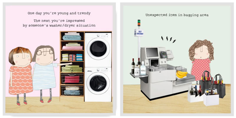 These are the Rosie Made a Thing Washer/Dryer Greeting Card and Bagging Area Greeting Card.